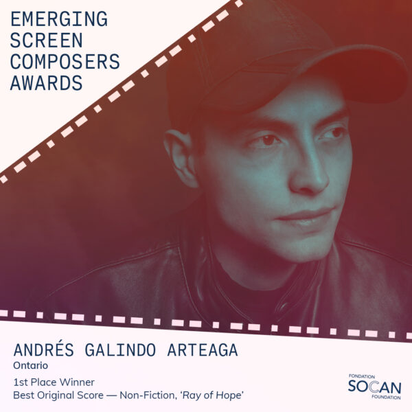 Andrés Galindo Arteaga is a BIPOC Colombian-Canadian CASMA and multi-SOCAN foundation award-winning screen composer based in Toronto, known for blending traditional folkloric acoustic instruments with contemporary electronic synthesis. He completed an internship at the Screen Composers Guild of Canada and was selected as one of ten participants for the SOCAN Labs scoring retreat program, where he was mentored by CSA Rich Williamson (Scarborough, TIFF) and Steph Copeland (Cascade, The Oak Room, Viscious Fun).